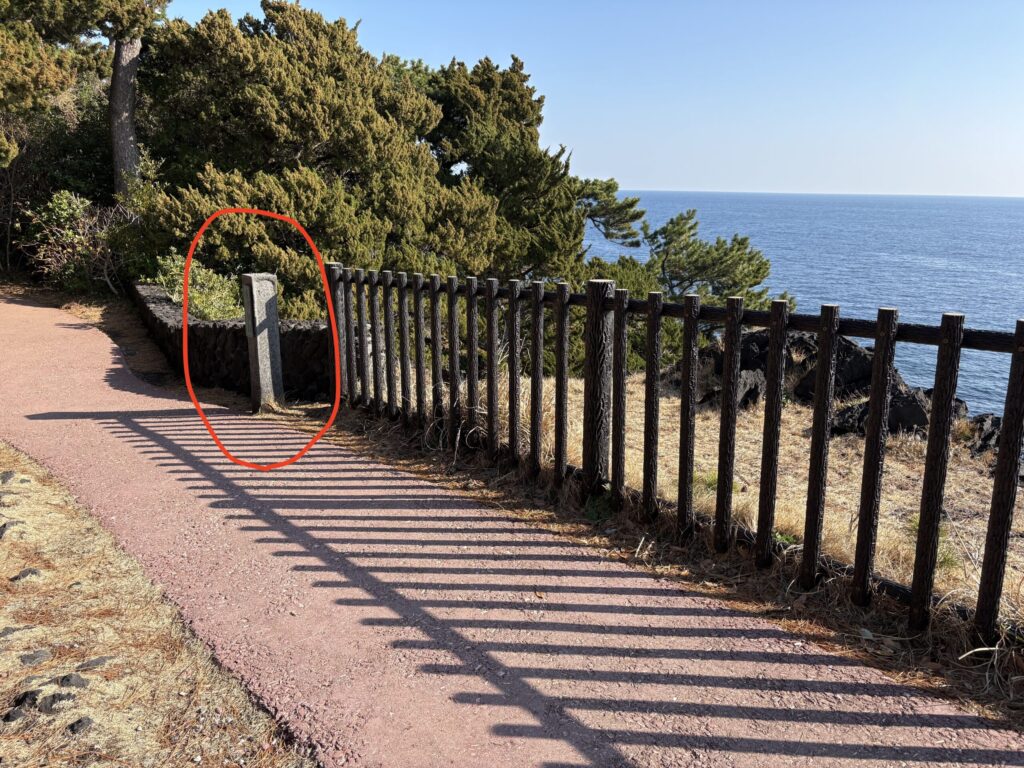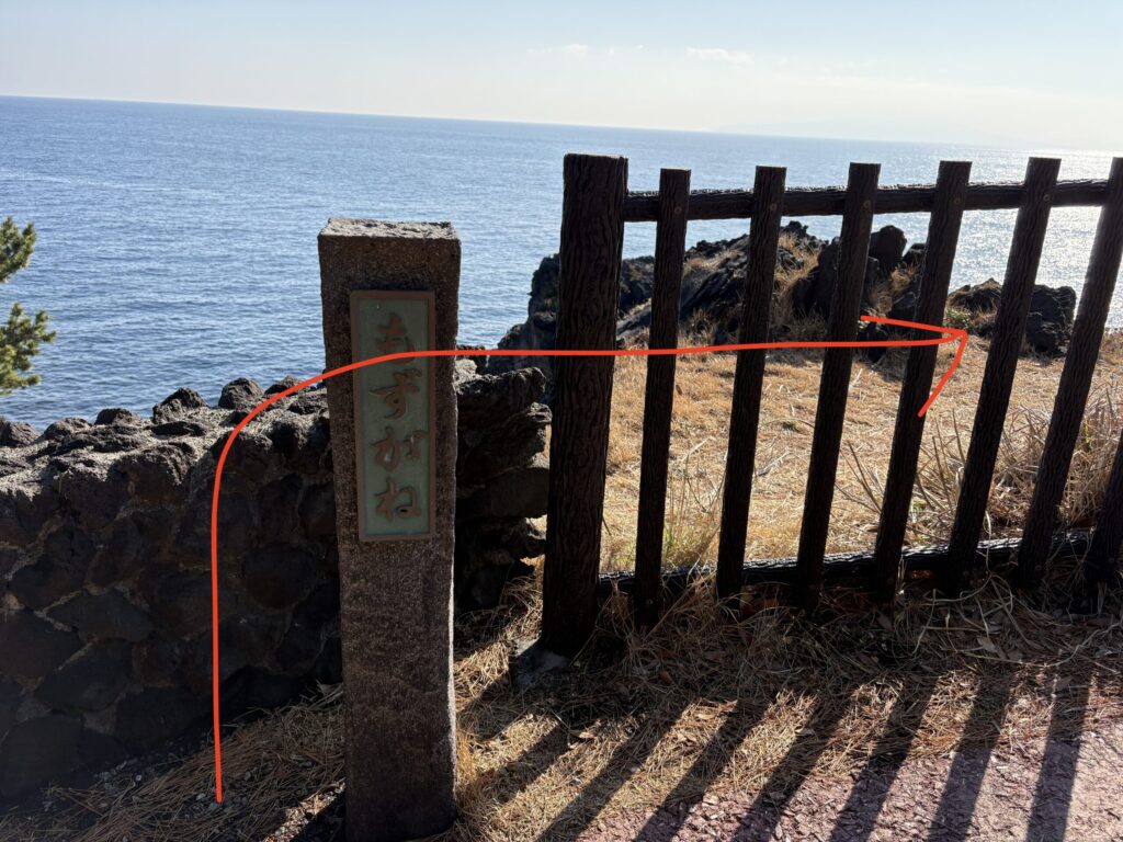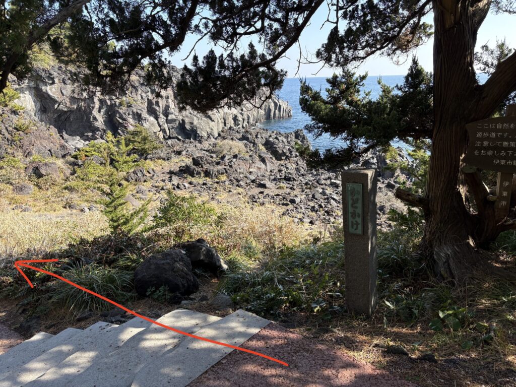 城ヶ崎ブルースの歌碑を左に曲がり、遊歩道を歩きます、途中階段があります